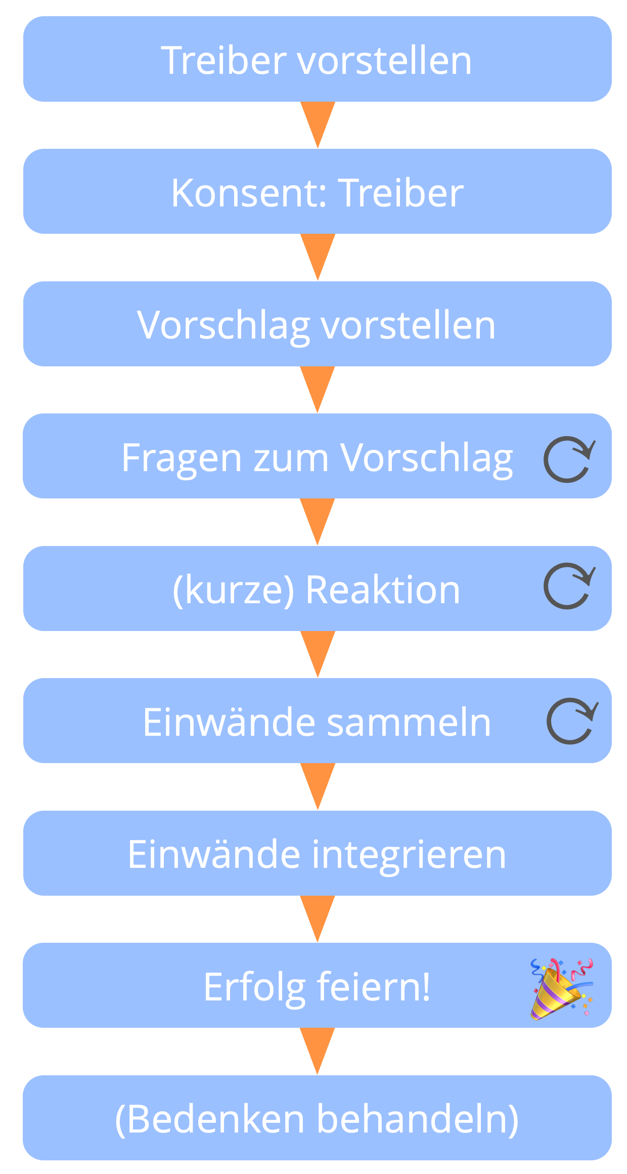 Ein gut vorbereiteter Vorschlag ist schon super, wenn nichts dagegen spricht. Wenn gut nachvollziehbare Argumente in einem Vorschlag enthalten sind und alle verstehen was zu entscheiden ist, kann die Entscheidung meist sehr schnell getroffen werden.